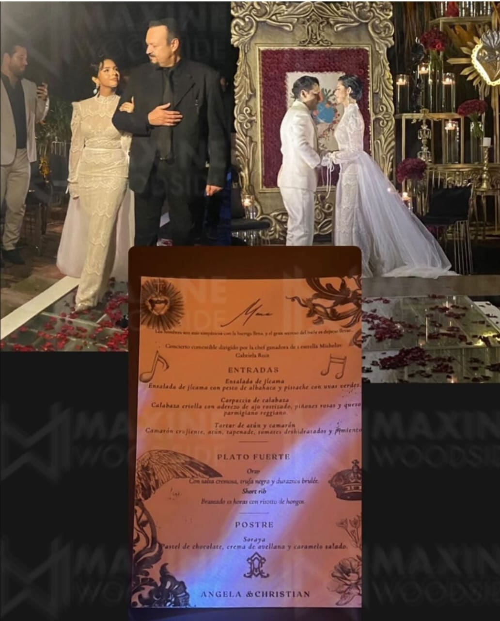 Así mismo, en sus redes sociales Woodside compartió imágenes filtradas que confirmarían que la boda se llevó a cabo, en estas se ve a Pepe Aguilar del brazo de Ángela Aguilar quien viste de blanco, caminando por una alfombra de pétalos de rosas; mientras que en otra de las imágenes se ve a Christian Nodal con un traje blanco tomando de las manos a su amada.