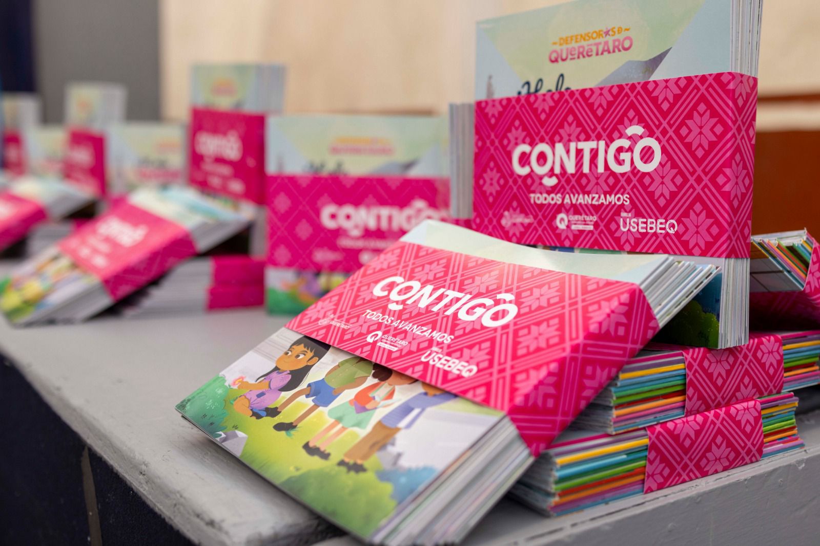Durante este evento, realizado en la Escuela Primaria Josefa Ortiz de Domínguez, la coordinadora general de la Unidad de Servicios para la Educación Básica en el Estado de Querétaro (USEBEQ), Irene Quintanar Mejía, compartió que cada paquete incluye una colección de 12 libros con cuentos para que la comunidad estudiantil refuerce su identidad, y les aporte conocimientos del lugar donde vive.