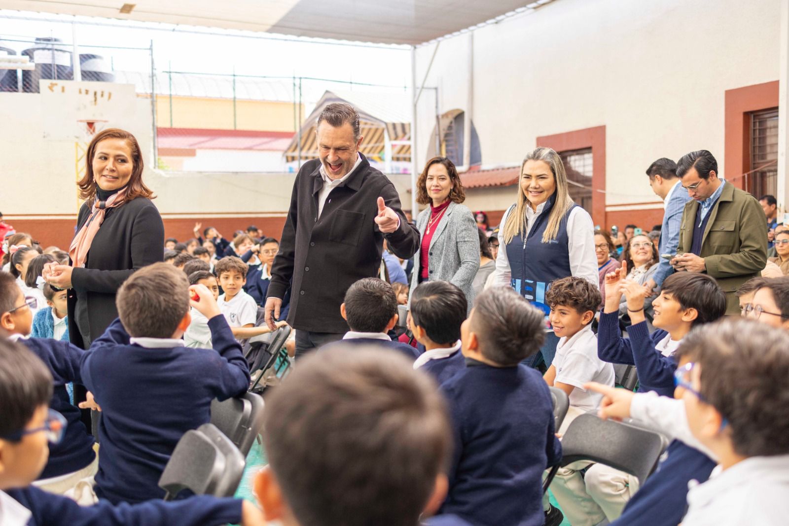 El gobernador, Mauricio Kuri González, encabezó la entrega de paquetes de libros “Defensores de Querétaro”, iniciativa diseñada para difundir las raíces queretanas a través de la lectura, y fomentar la equidad educativa y cultural, el buen desempeño académico y la cohesión social, entre los estudiantes de instituciones públicas de educación primaria del estado de Querétaro.