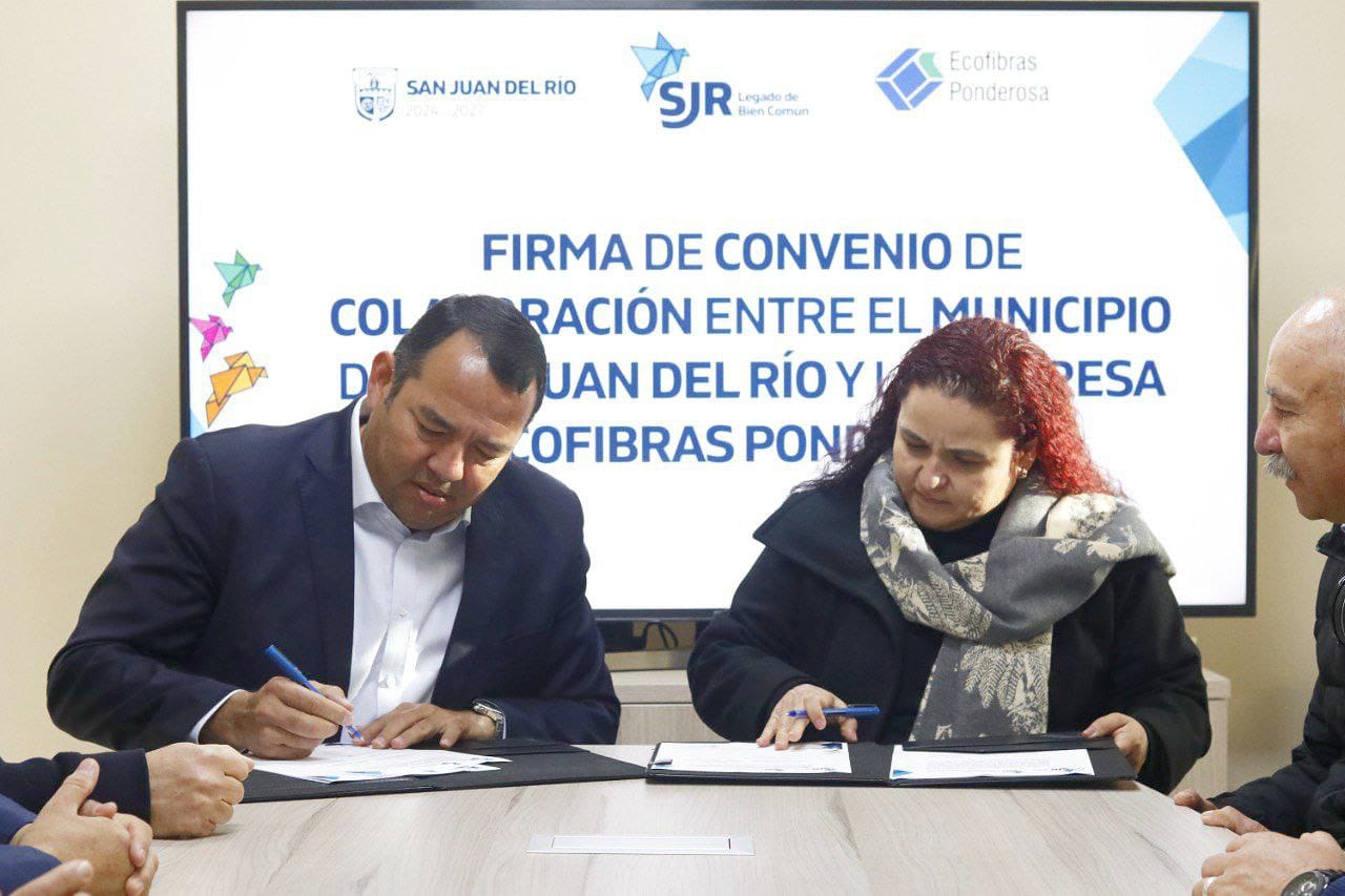 Para promover la sostenibilidad y el reciclaje, el Gobierno Municipal de San Juan del Río, presidido por el alcalde, Roberto Cabrera Valencia, y la empresa Ecofibras Ponderosa, firmaron un convenio de colaboración, a través del cual el primero proporcionará a la empresa el papel utilizado, para que esta lo transforme y le dé un segundo uso.