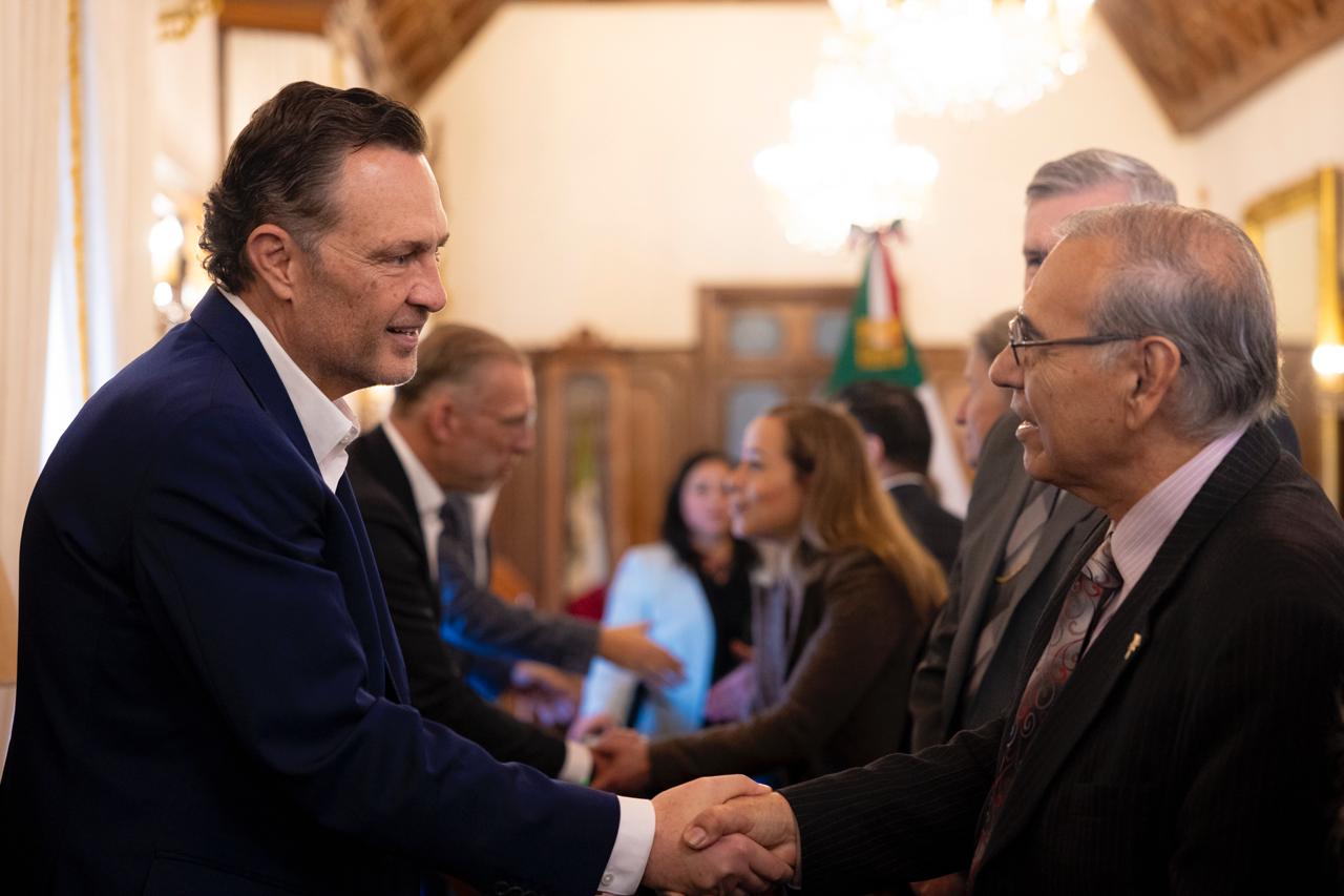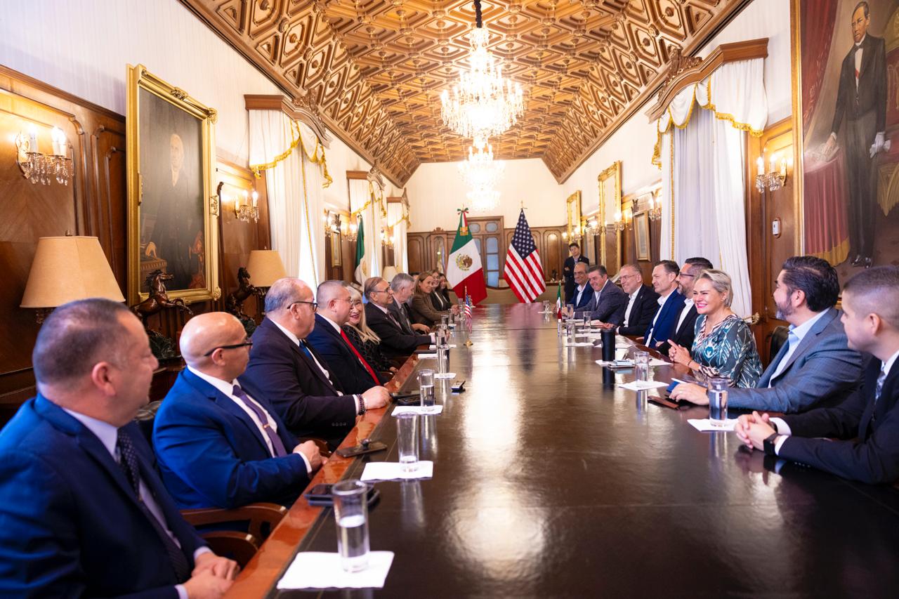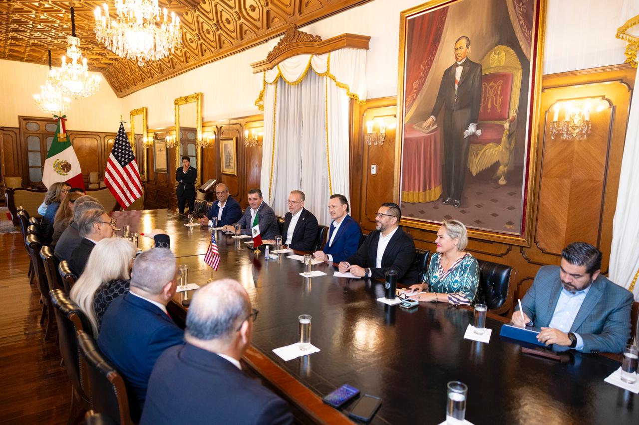 El gobernador, Mauricio Kuri González, recibió en Palacio de Gobierno al alcalde de Laredo, Texas, Víctor D. Treviño; a su esposa, Rosa Márquez de Treviño, así como a una comitiva conformada por integrantes de su equipo de trabajo que lideran la coordinación de Relaciones Internacionales, la Oficina de Convenciones y Visitantes, el Aeropuerto Internacional, el Departamento de Bomberos, la Secretaría Particular, así como la gerencia de Mercadotecnia de Puerto Laredo.
