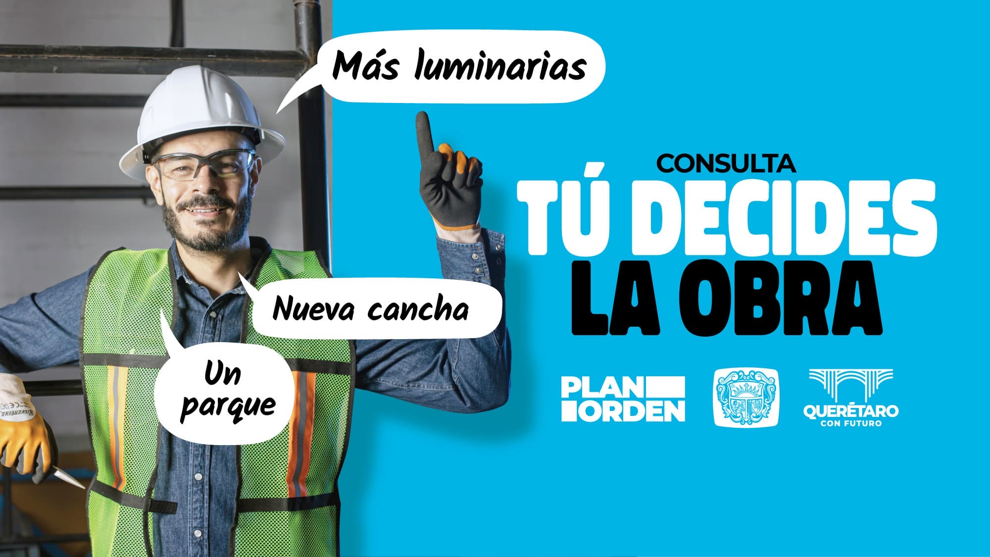 “Decide Querétaro, hoy se estrena con la consulta de obra pública donde lo que queremos es que la gente nos diga cuáles son las obras que necesitan, las obras que prefieren, pero también que nos ayuden opinando de otras obras que se han propuesto y que nos gustaría escuchar la opinión de la gente”.