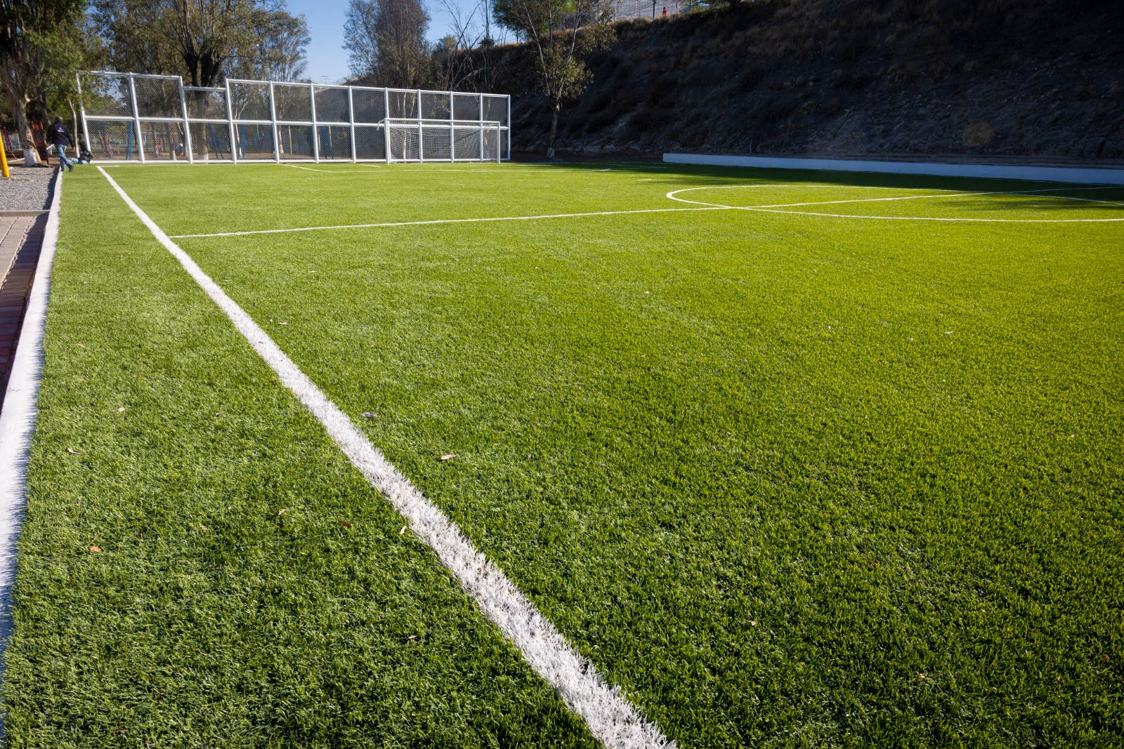 “Bien, esta es una cancha de fútbol 7, como ustedes pueden apreciar, muy digna, muy moderna, cumple todas las normas que marcan los reglamentos en este sentido. Se construyó un muro muy importante en la parte sur de la cancha, (…) se construyó la parte de la base hidráulica, que es el piso de grava, previo a la colocación del pasto sintético, el equipamiento de porterías, la pintura de rayas, guarniciones, etcétera, con un costo de 2.4 millones de pesos”, detalló.