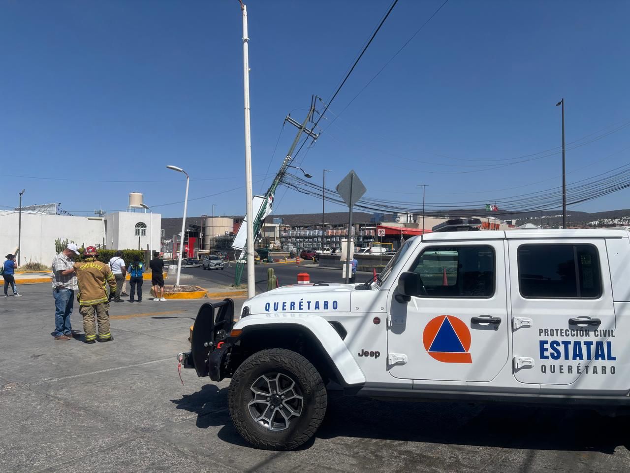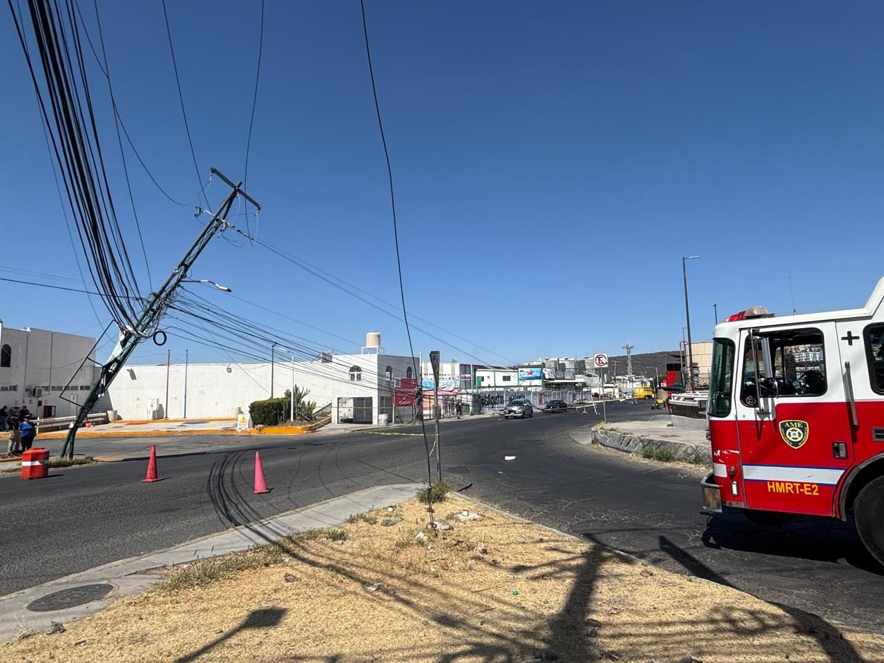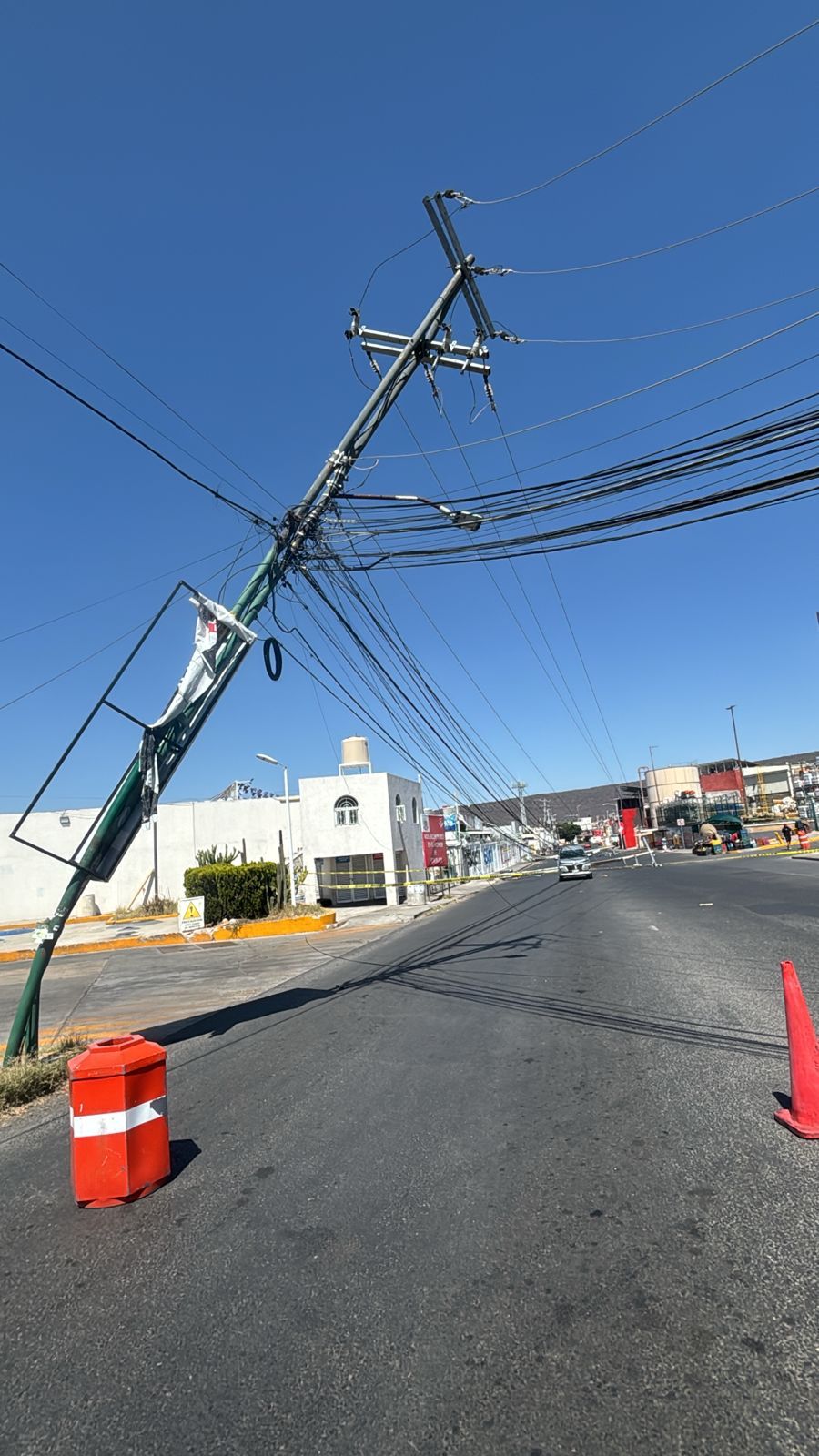 Dos postes de concreto, que sostenían cables de luz, telefonía y televisión por internet, en la colonia Plazas del Sol, cayeron y provocaron daños en dos vehículos, debido a que los cables cayeron encima del toldo cuando circulaban sobre Avenida del Parque.