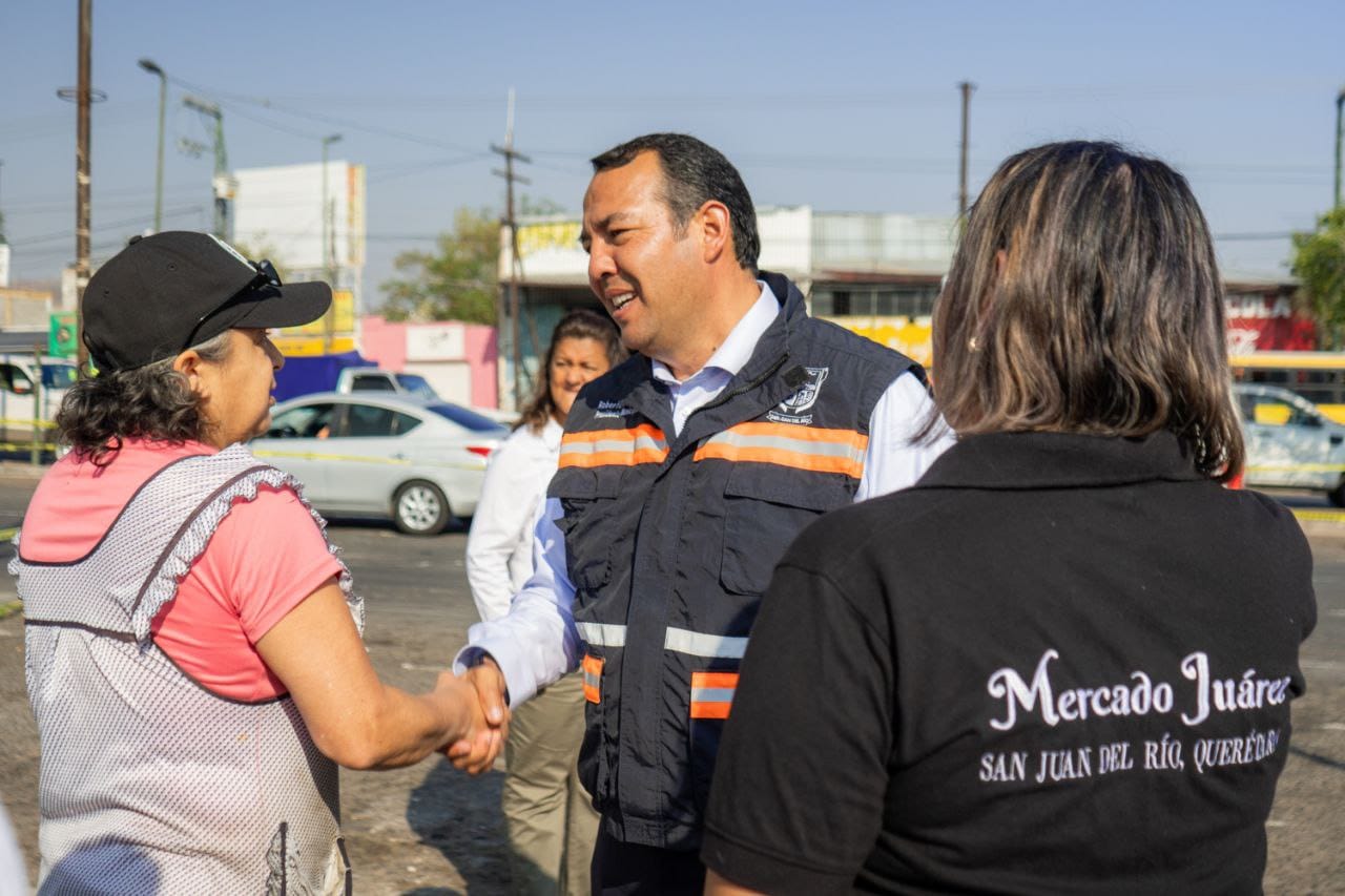 El presidente de San Juan del Río, Roberto Cabrera Valencia, inició los trabajos para la rehabilitación de la imagen urbana en el Mercado Juárez, obra que beneficiará a 15 mil habitantes.