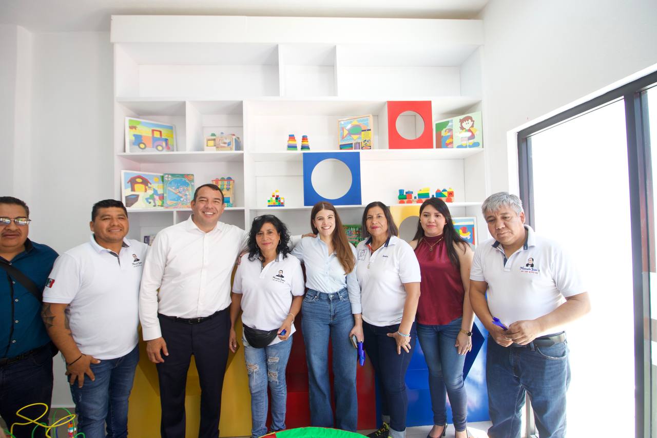 La presidenta del Sistema Municipal para el Desarrollo Integral de la Familia de San Juan del Río (DIF), Gina Sánchez Barrios, y el alcalde sanjuanense, Roberto Cabrera Valencia, entregaron la ludoteca del Mercado Juárez, espacio que permitirá a las y los hijos de locatarios y locatarias tener una estancia digna y segura en este centro de abasto mientras sus madres y padres realizan sus actividades.