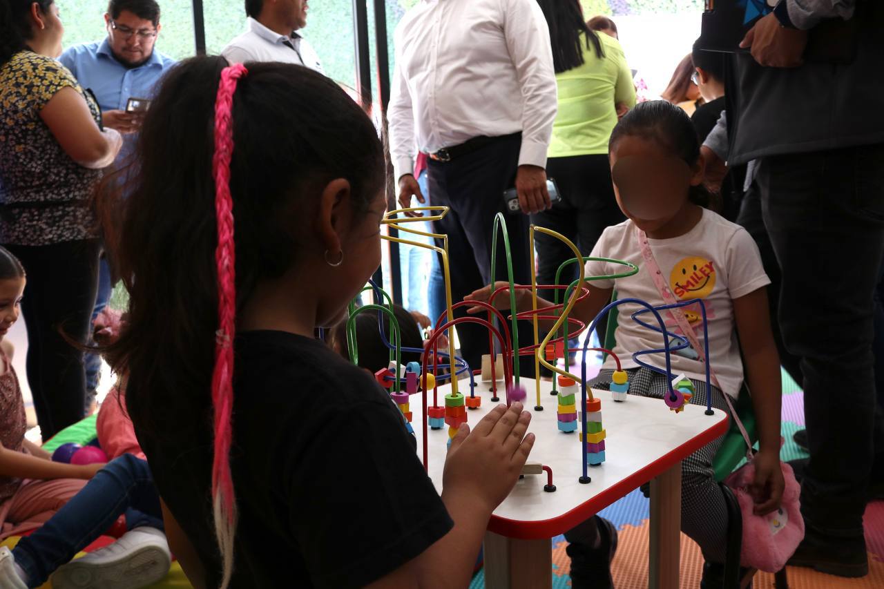 Durante la inauguración de la ludoteca, Gina Sánchez detalló que, para contar con este sitio, se realizó la donación de material didáctico para los y las niñas, se elaboraron e instalaron los espacios de almacenamiento a la medida del lugar, se colocaron librero y un corral, se renovó la pintura del espacio, se compraron e instalaron juegos para las infancias, se sustituyó el piso y se instaló cancelería.