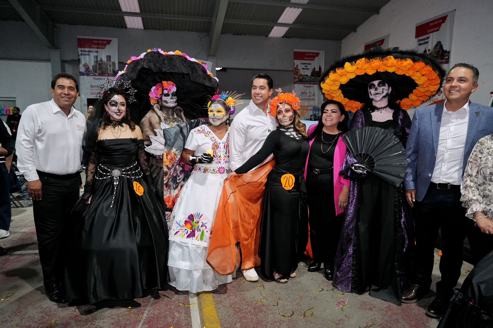 El presidente municipal de Querétaro, Felifer Macías, asistió a la cuarta edición del concurso de Catrinas y Altares, organizada por la Sección 24 del Sindicato Nacional de Trabajadores de la Educación (SNTE), donde reconoció la valiosa labor de los docentes en la formación del futuro de Querétaro.