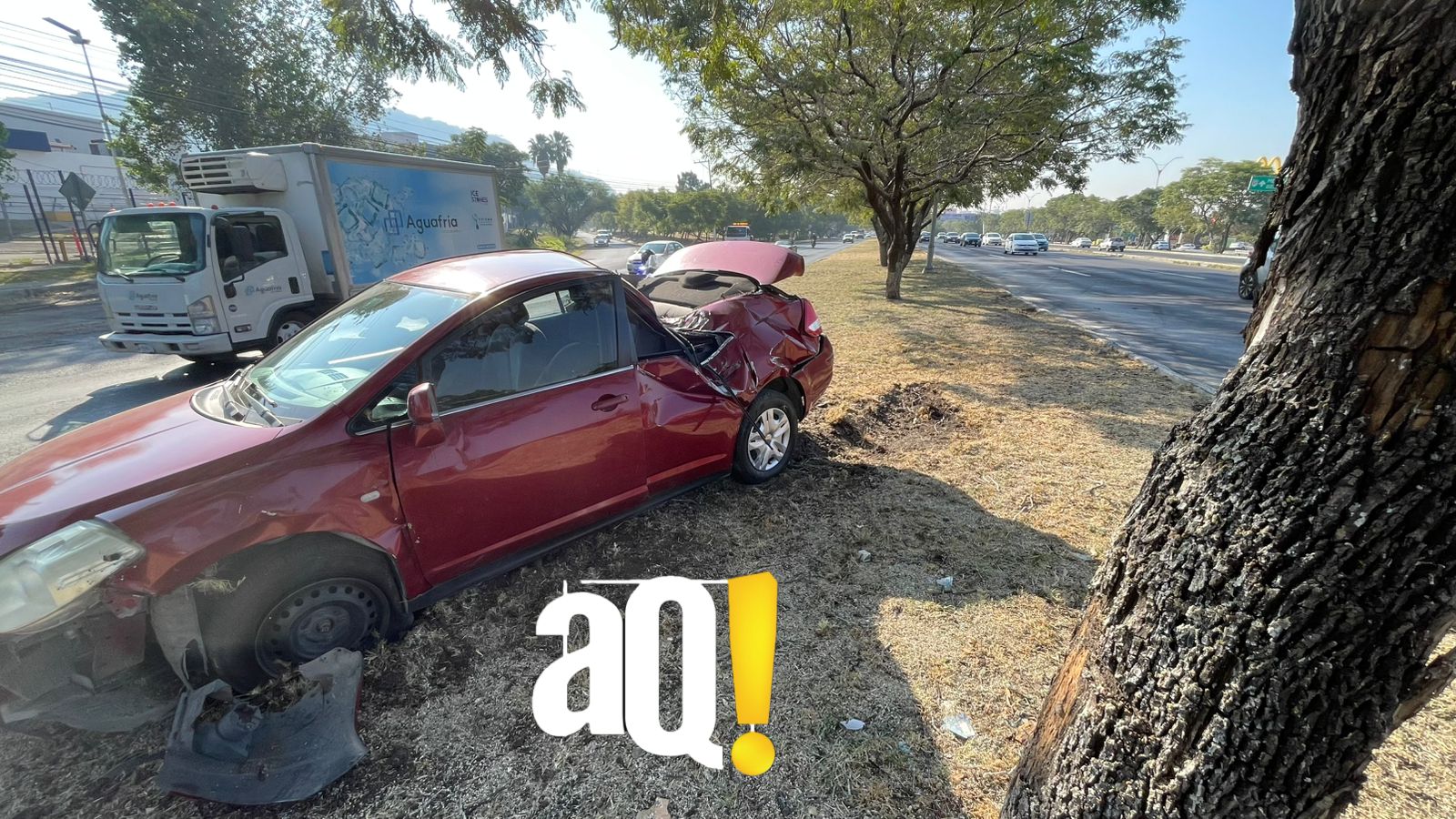 Un automóvil quedó con cuantiosos daños después de chocar contra las jacarandas del camellón en Paseo de la República, a la altura de Jurica, con dirección a Santa Rosa Jáuregui.