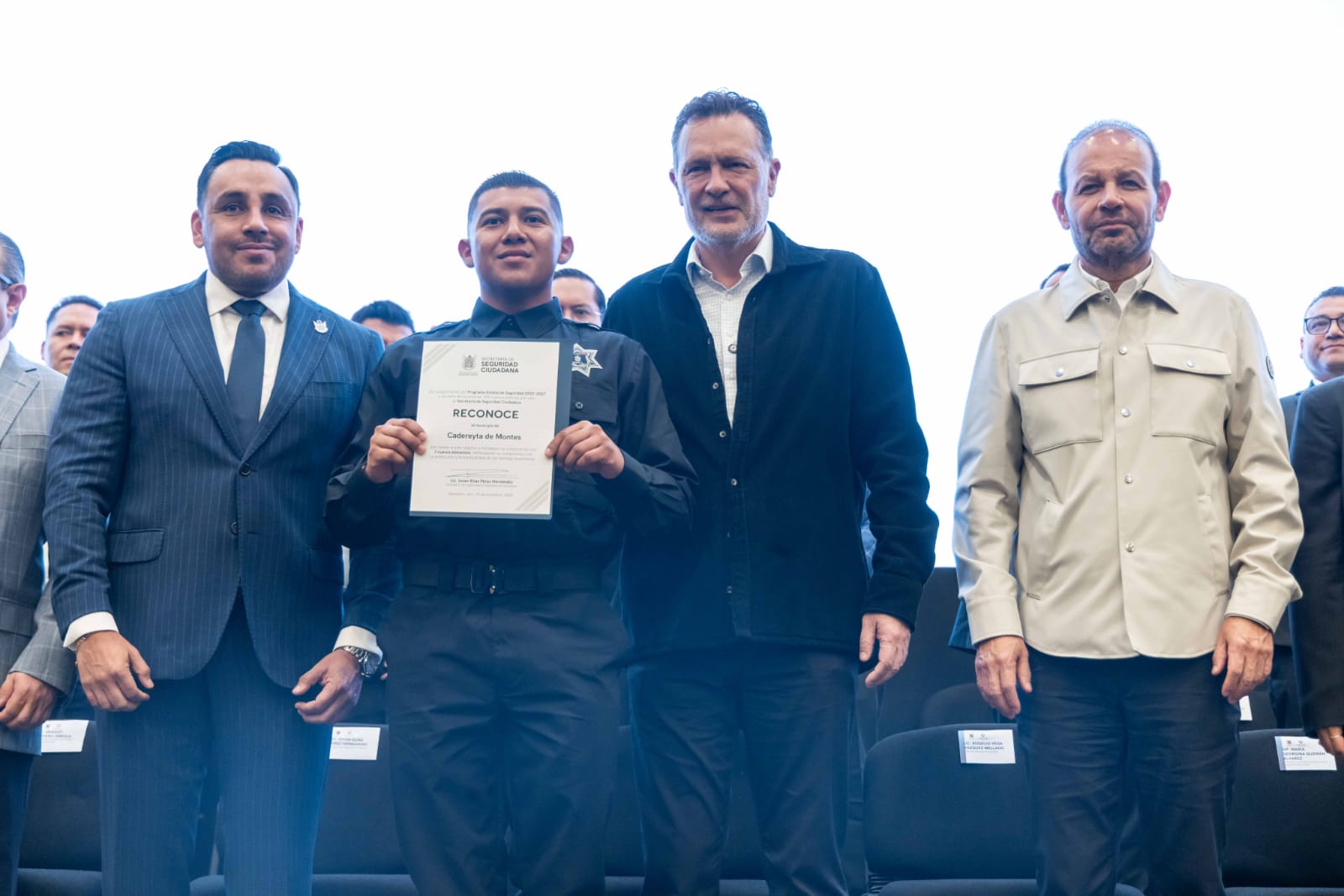 Del mismo modo, reconoció a las instituciones que hacen posible la estrategia de profesionalización policial que distingue a la entidad. Asimismo, el Gobernador hizo entrega simbólica de 17 constancias a igual número de nuevos elementos pertenecientes a diversas corporaciones municipales y a la Policía Estatal.
