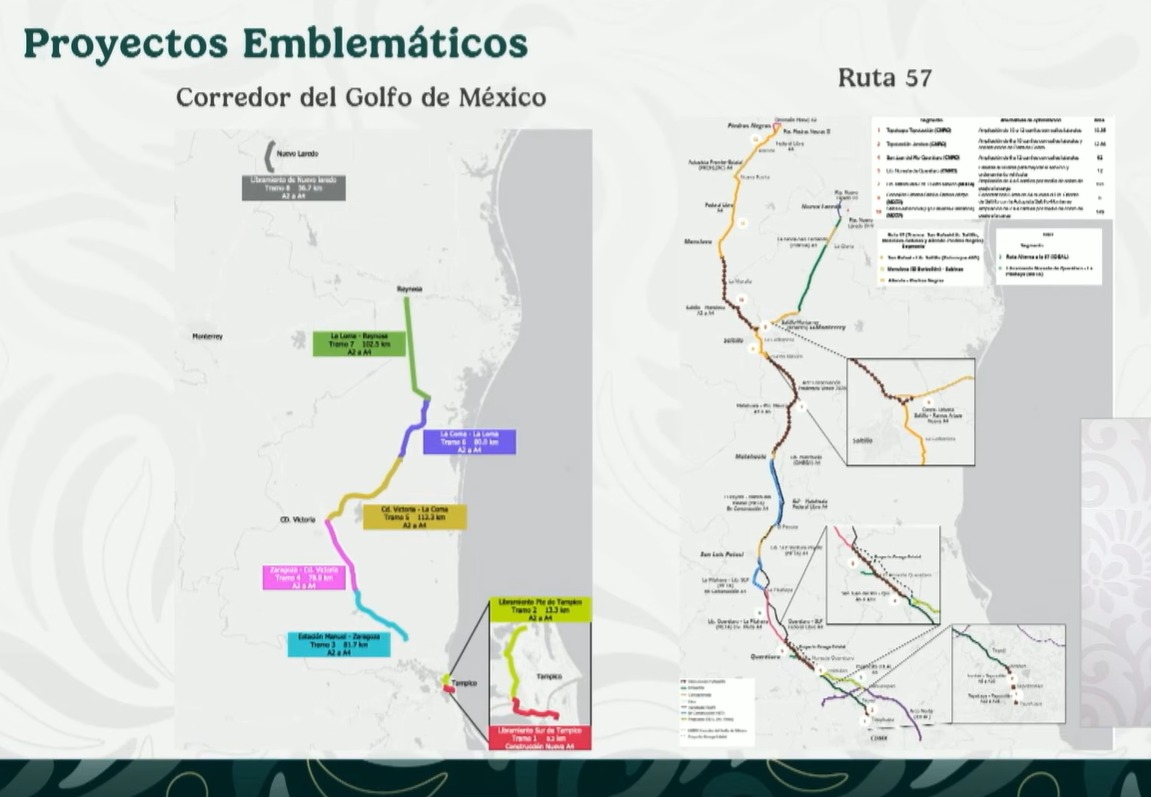 Entre los proyectos destaca dos obras insignia del Gobierno Federal, el Corredor del Golfo y la modernización de la Ruta 57, dos de las vías estratégicas para el comercio y la movilidad en México.