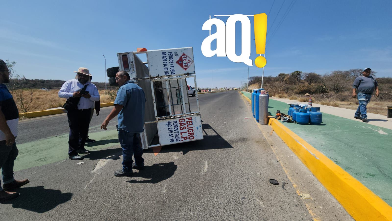 Policías municipales de Querétaro cerraron parcialmente la vialidad desde el cruce con Paseo Querétaro, mientras se realizaban las maniobras para retirar los cilindros, limpiar la zona y remolcar las unidades involucradas con apoyo de grúas.