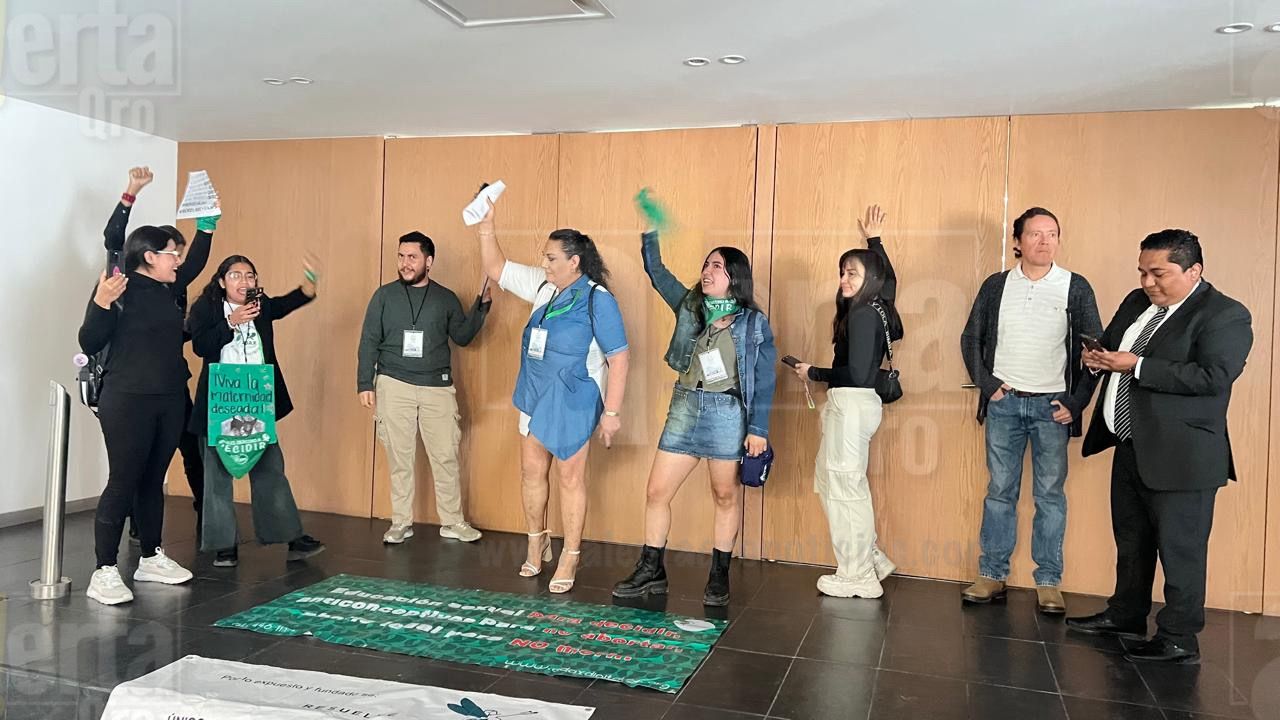 A minutos de iniciar la sesión de Pleno, para la designación de la nueva Mesa Directiva, un grupo de la asociación feminista Adax Digitales se hizo presente para pedir que se turne la iniciativa para el aborto legal en Querétaro.