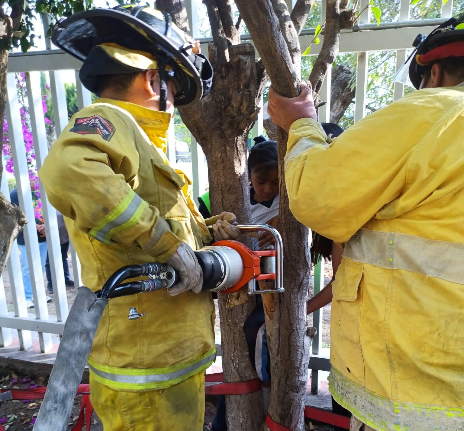 Una menor fue rescatada por el Cuerpo de Bomberos Voluntarios y la Coordinación Municipal de Protección Civil de Pedro Escobedo después de que una de sus extremidades quedó atrapada en un árbol al interior de una primaria de la comunidad de El Sauz Alto en esta demarcación.