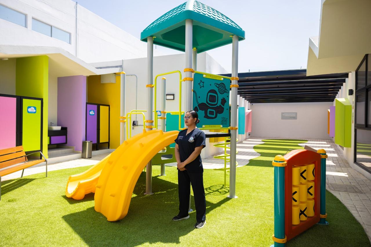 Afirmó que este espacio tiene seis villas para las madres y sus hijos, un área de juego y un espacio exclusivo para los infantes. Tiene un lactario, ludoteca, sala de profesores, área de custodios y una explanada de acceso.