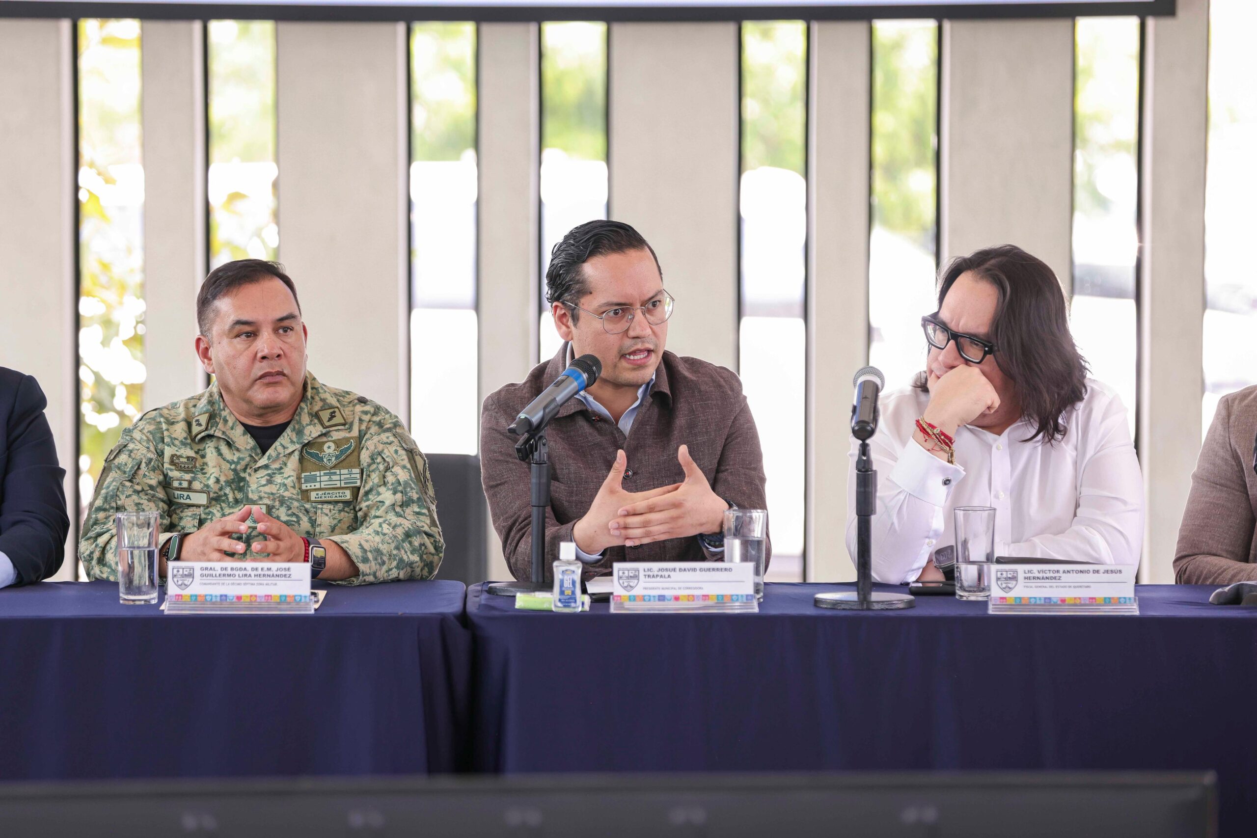 También estuvieron los alcaldes de Querétaro y El Marqués, Felipe Fernando Macías y Rodrigo Monsalvo, respectivamente; el comandante de la Décimo Séptima Zona Militar, José Guillermo Lira; el coordinador estatal de la Guardia Nacional, Ricardo Meléndrez; el magistrado presidente de la Sala Constitucional del Poder Judicial del Estado, Carlos Rubén Eguiarte; los secretarios de Seguridad Pública de: Corregidora, Ángel Rangel; de Huimilpan, Gildardo Luna; de Querétaro, Juan Luis Ferrusca y de El Marqués, Jorge Luis Barrera; así como secretarios y secretaria de Gobierno de la zona metropolitana.