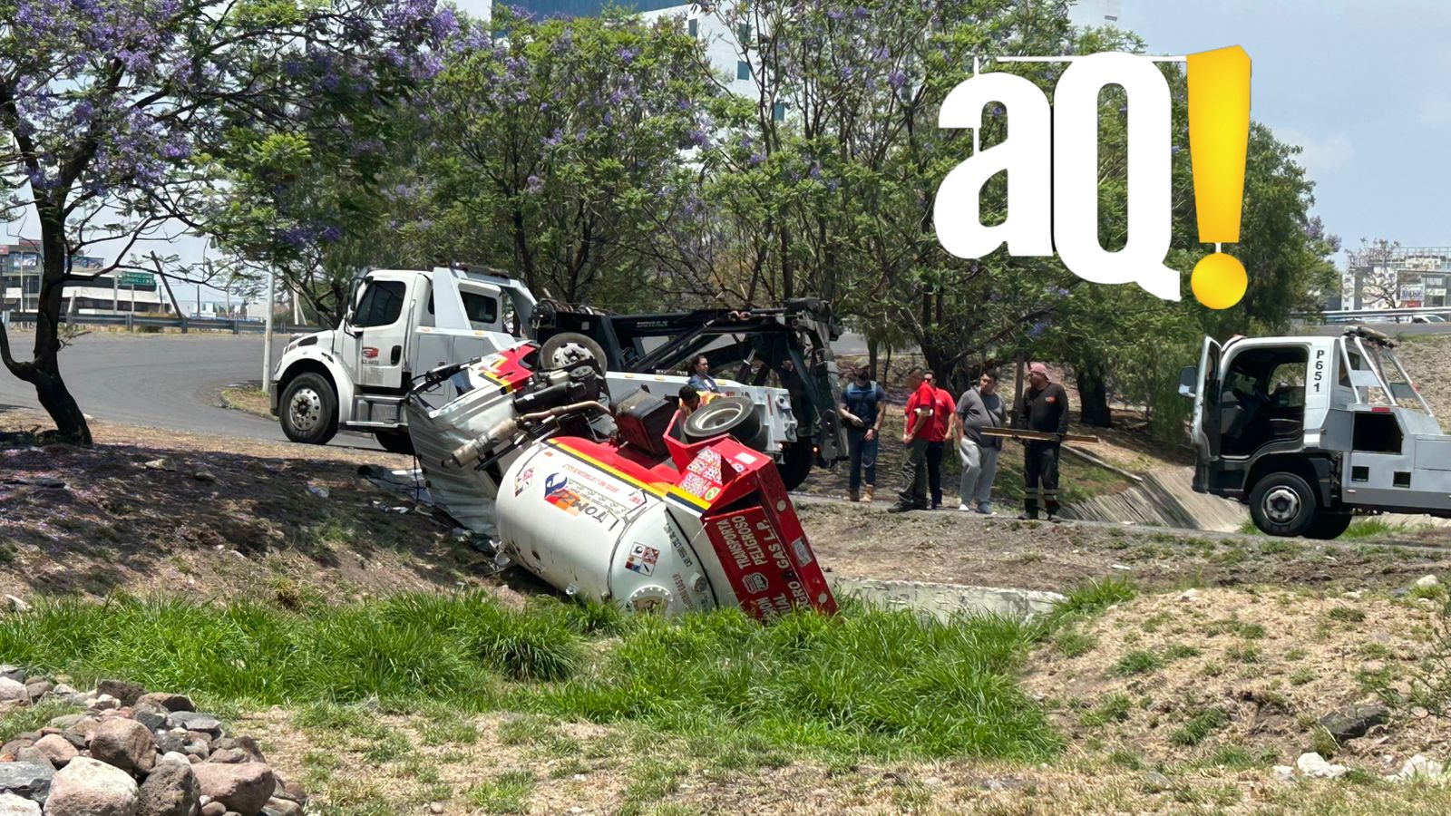 Una pipa repartidora de gas LP volcó sobre Paseo de la República, a la altura de la incorporación hacia el Anillo Vial Fray Junípero Serra, lo que provocó la movilización de cuerpos de emergencia y el cierre parcial de la vialidad.
